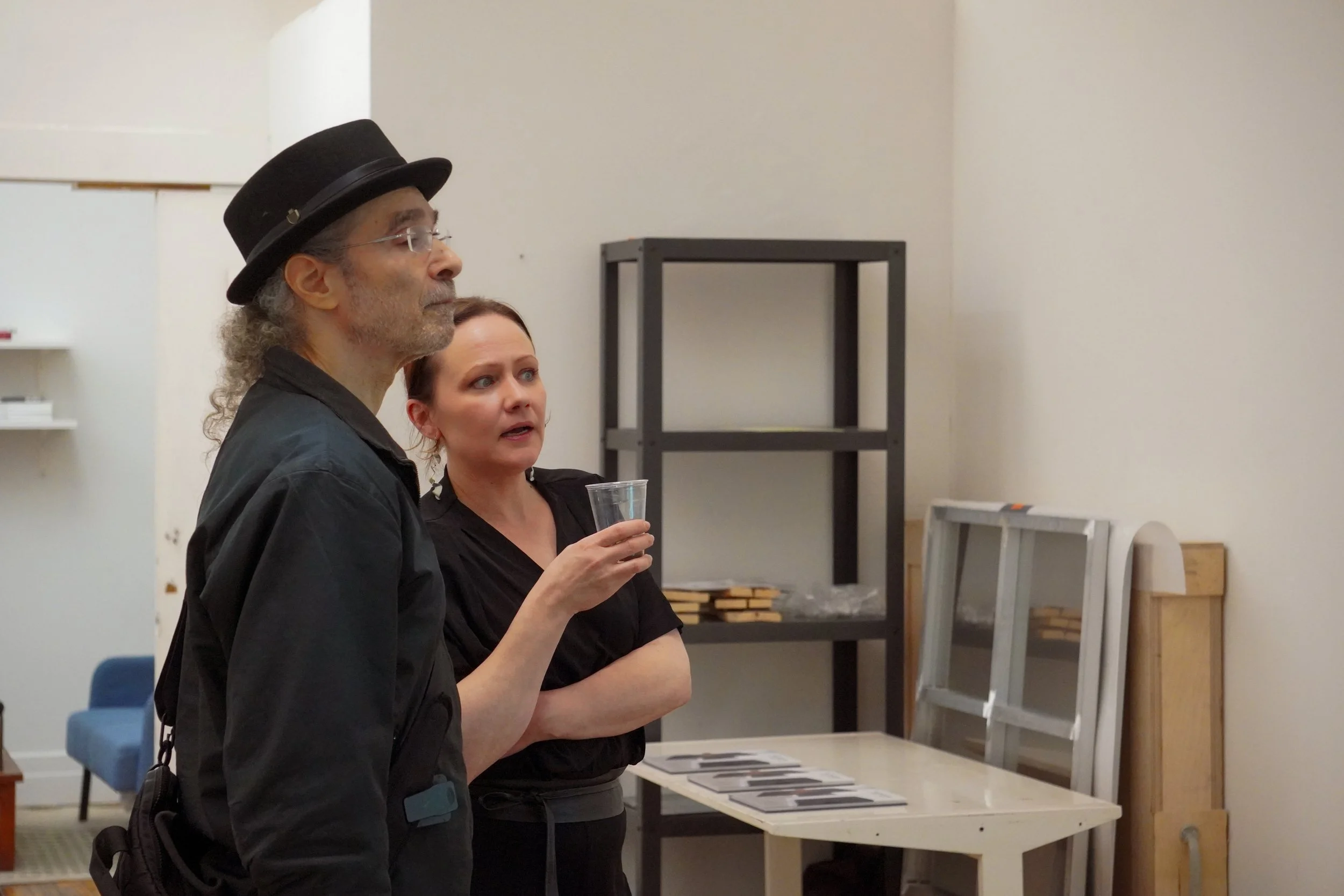 Tiina Pyykkinen in conversation with a guest at the Triangle open studios in November 2024.